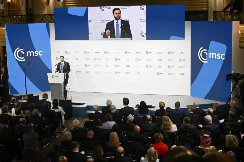 当地时间2月14日,美国副总统万斯在慕尼黑安全会议上发表讲话。