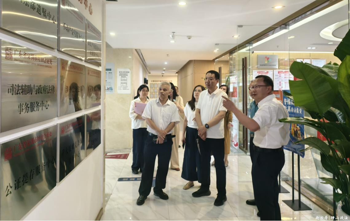 离开社区矫正中心后,调研团队前往坪山公证处。在参观过程中,坪山公证处负责人详细介绍了坪山公证处的公证大厅布局、公证业务流程、公证信息化建设以及公证服务拓展等方面的情况。坪山公证处通过优化公证大厅功能设置,实现了公证业务的分类办理和一站式服务;借助信息化技术,推行了网上公证大厅、公证预约平台等便民服务措施,提高了公证服务效率。